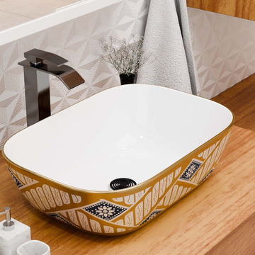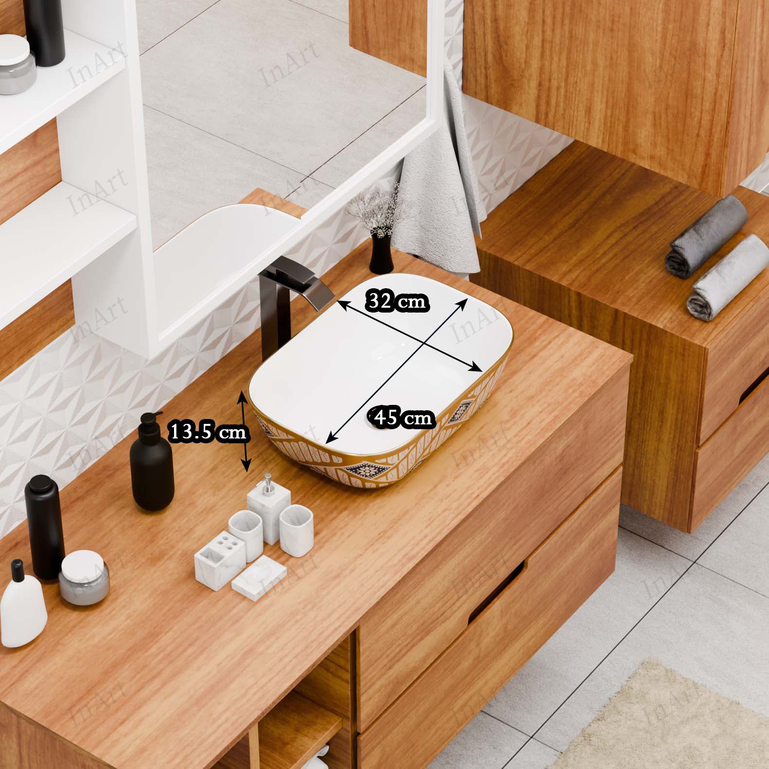 InArt Gold Table Top Wash Basin – Rectangular Countertop Ceramic Sink for Bathroom, 45 x 32 x 13.5 CM DW344