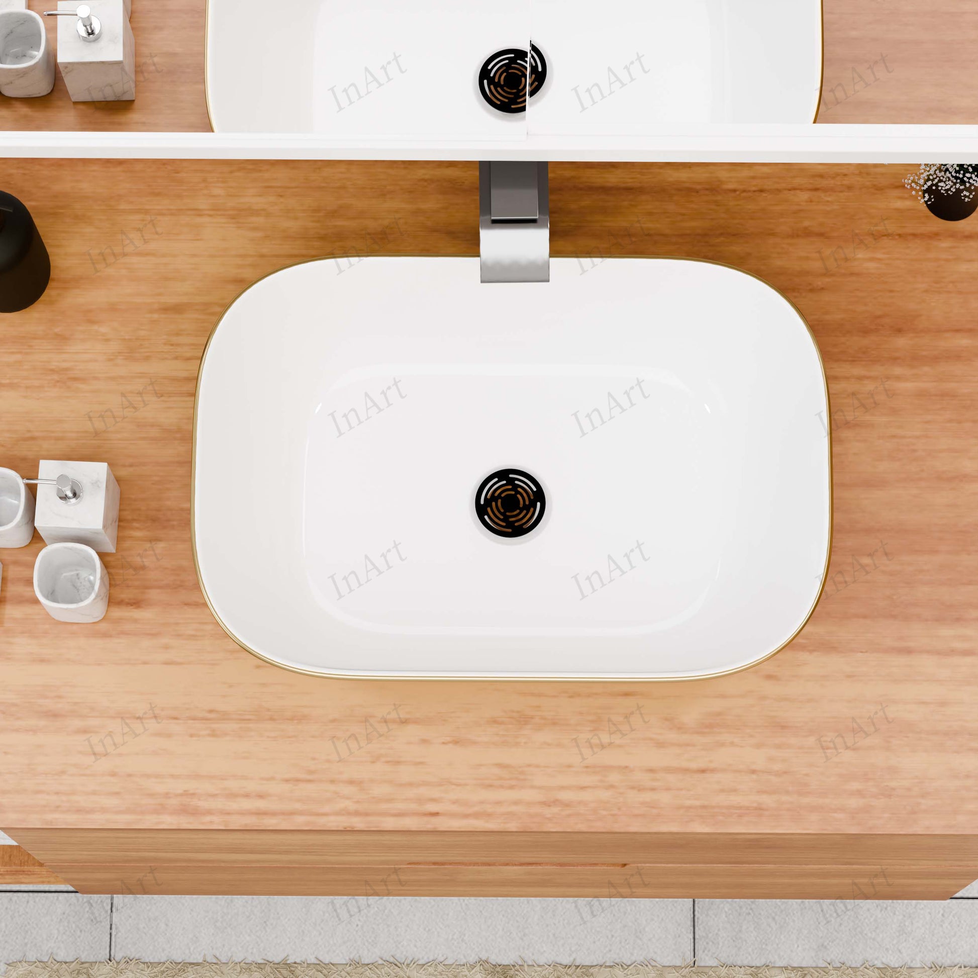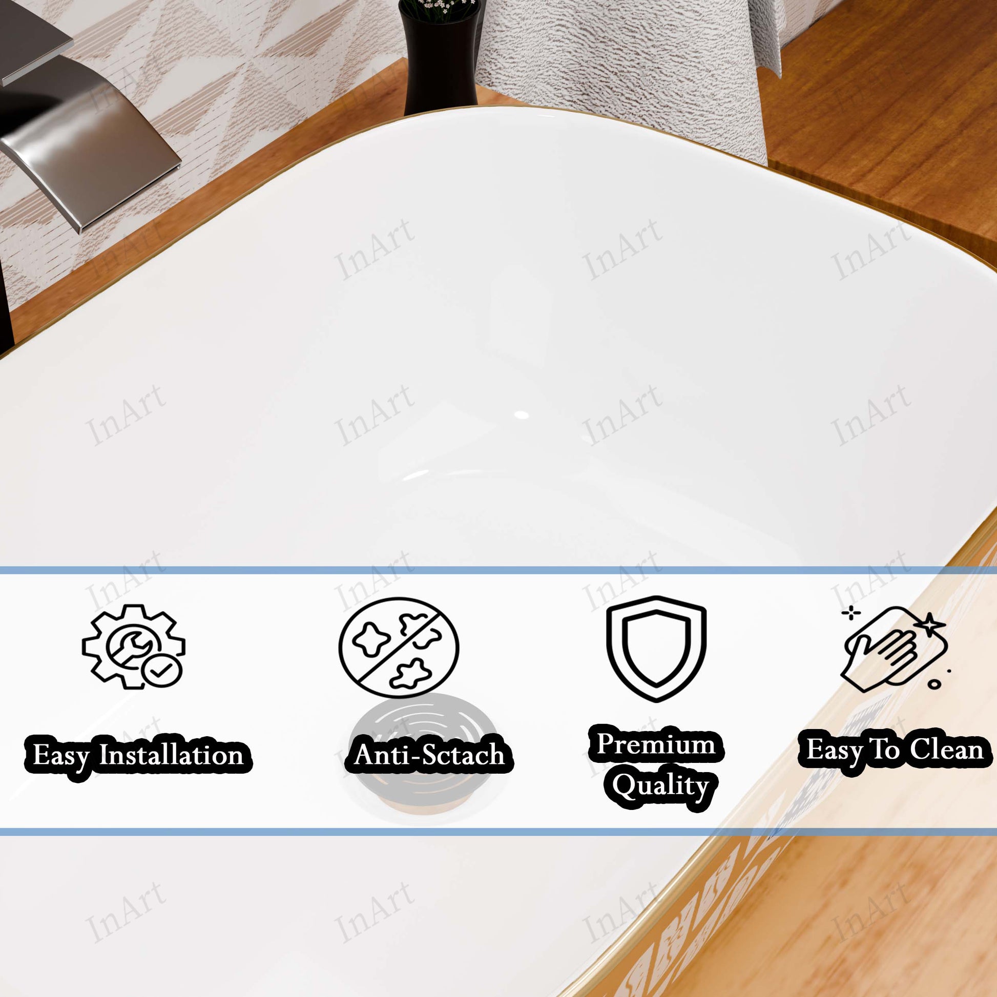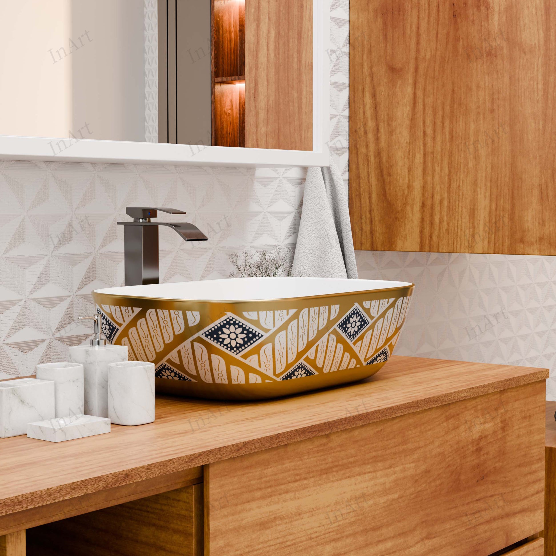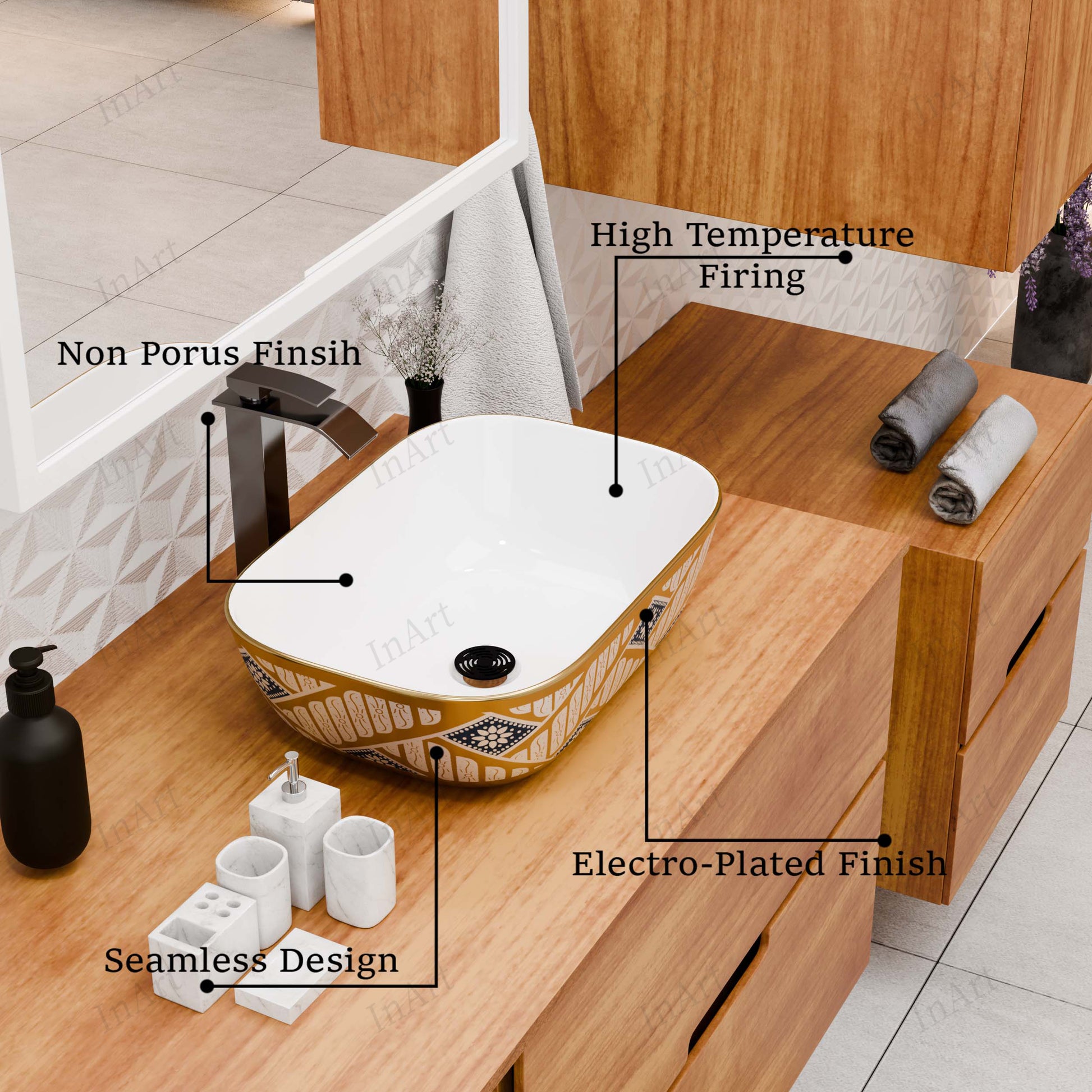 ✨ InArt Gold Table Top Wash Basin – Elegant Rectangular Countertop Ceramic Sink for Modern Bathrooms & Living Spaces