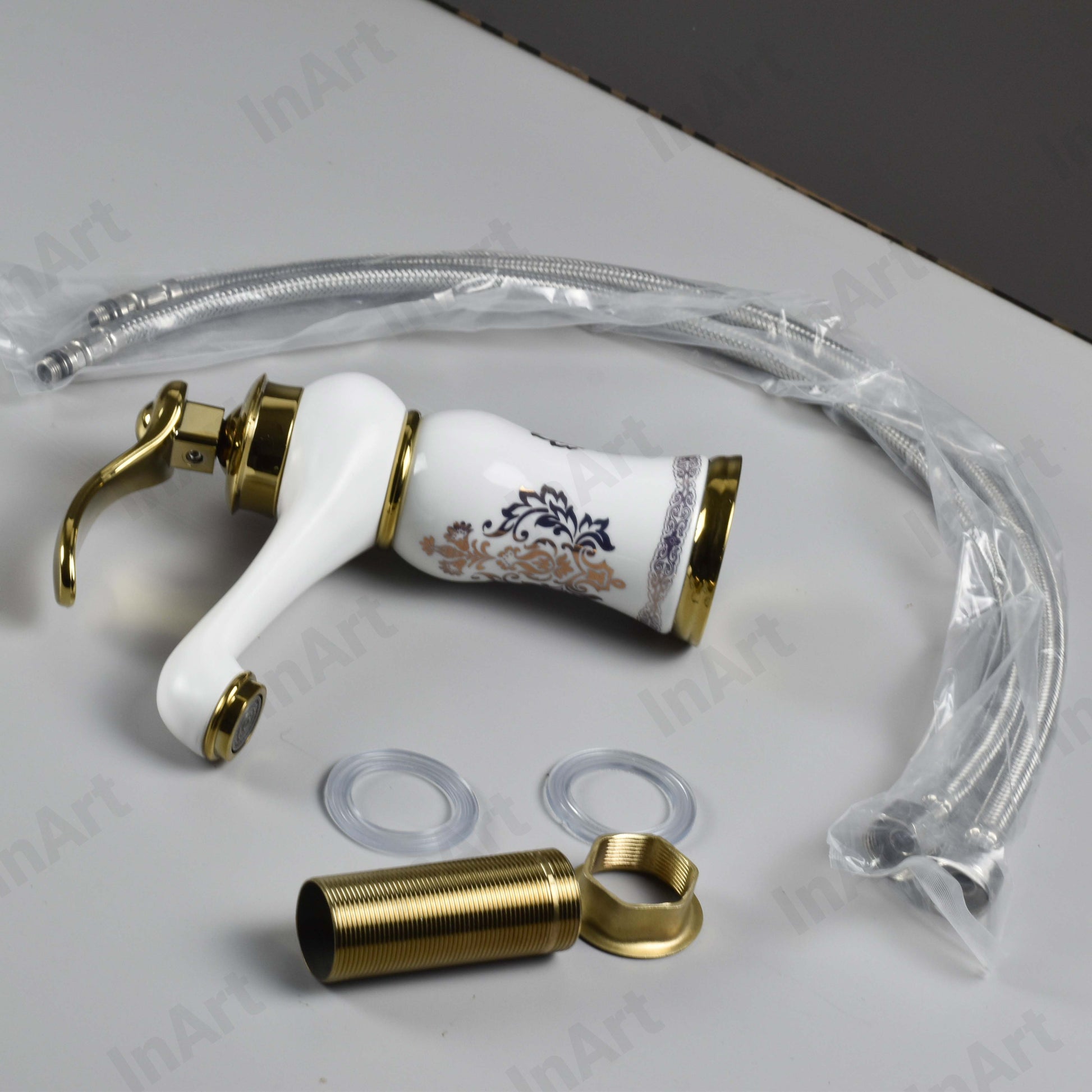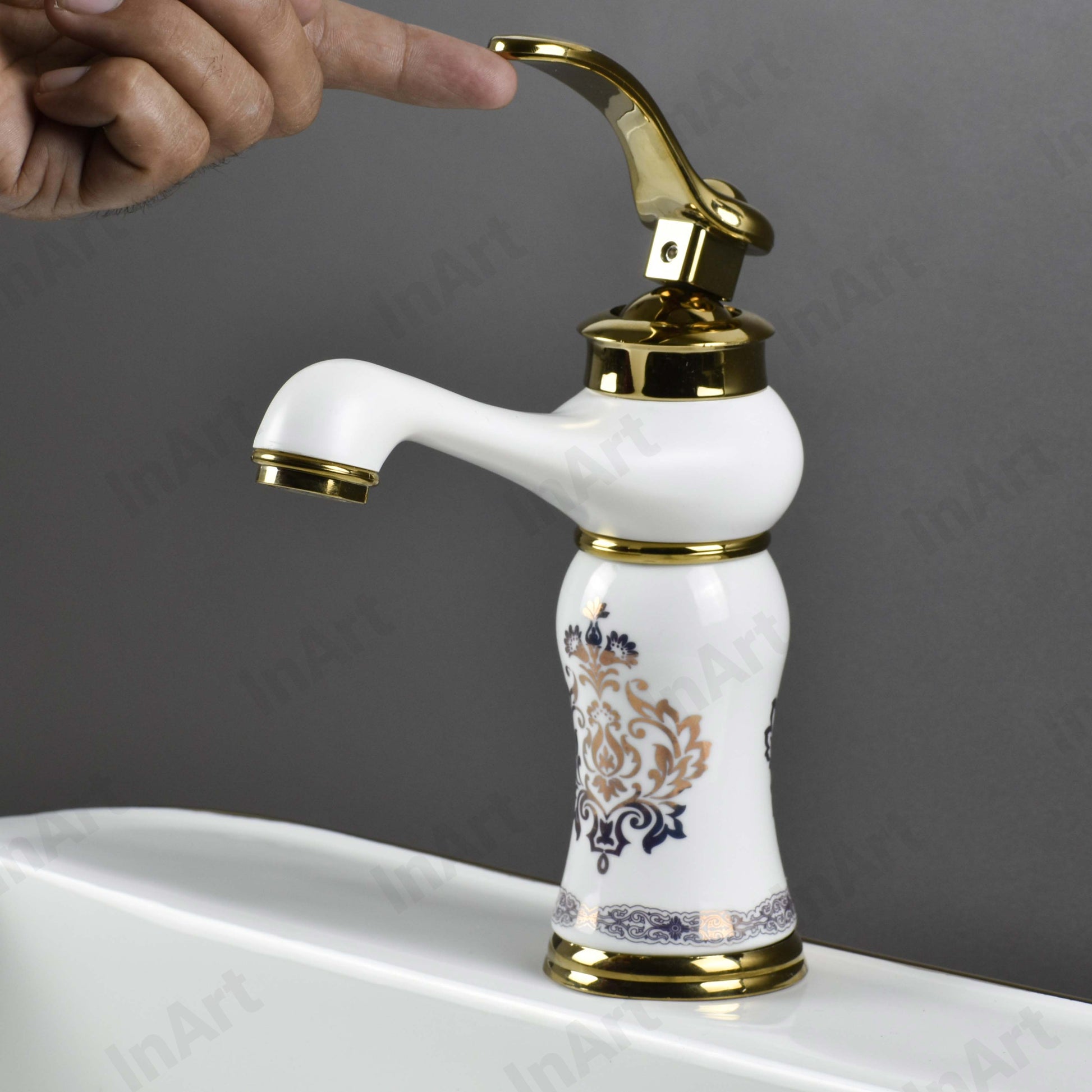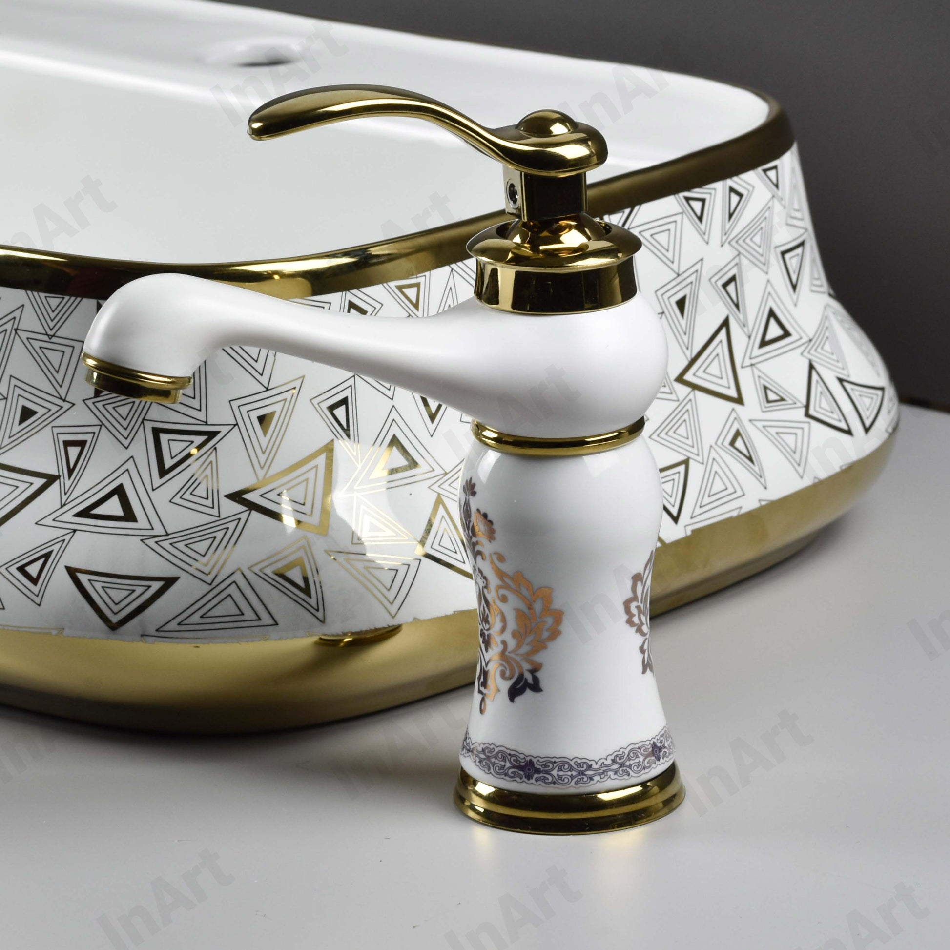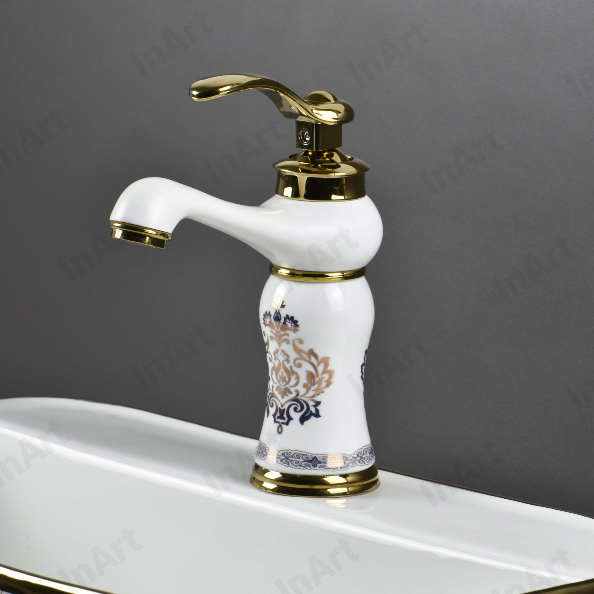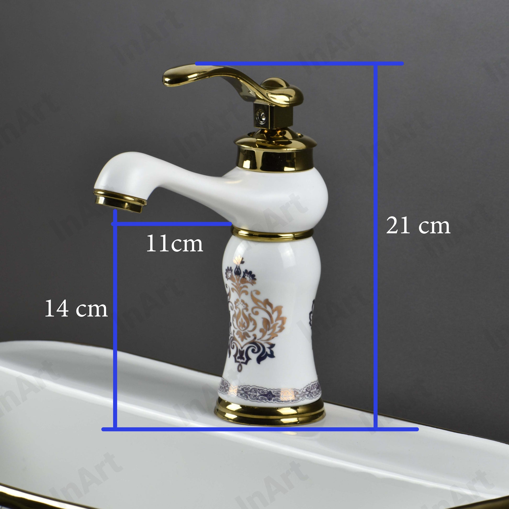 InArt Gold White Glossy Finish Basin Tap - Hot & Cold Mixer, Single Handle, Waterfall Design, Table/Deck Mount BF010
