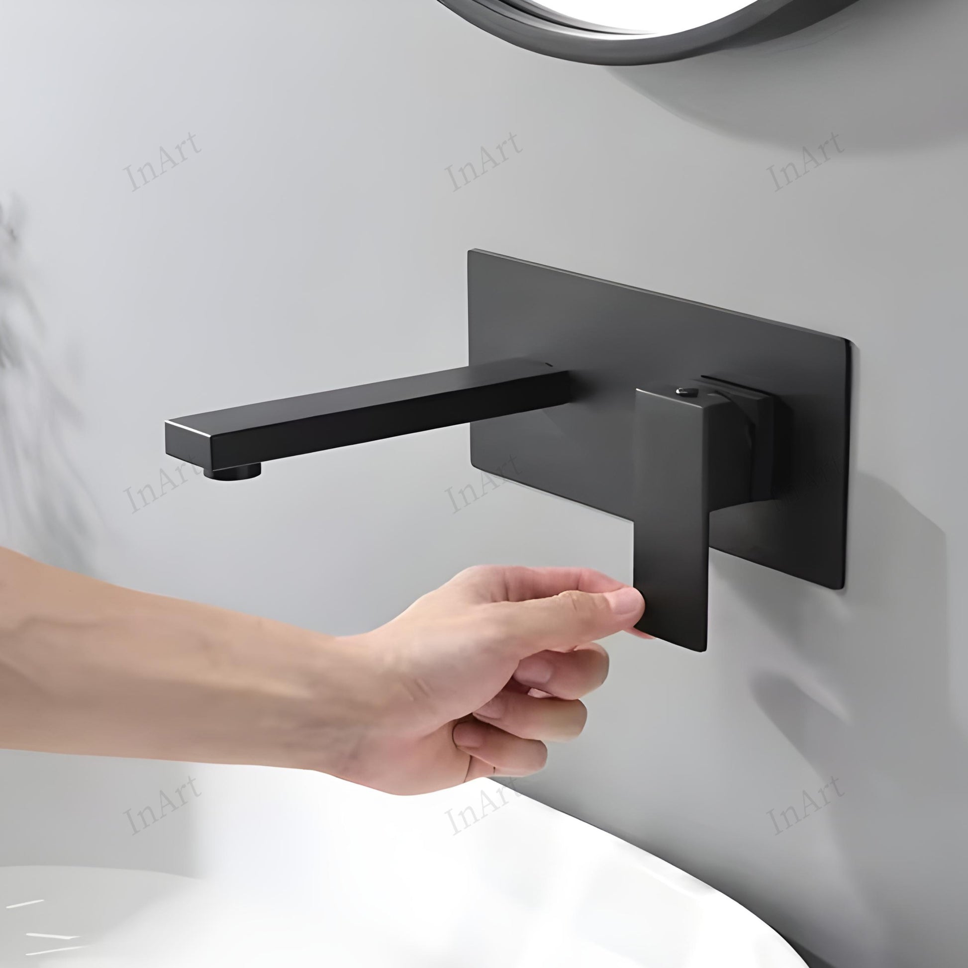 InArt Black Matt Wall Mount Single Lever Basin Mixer Tap | Black Matt Finish