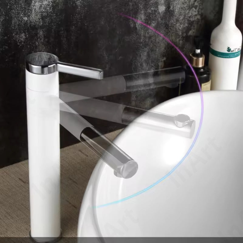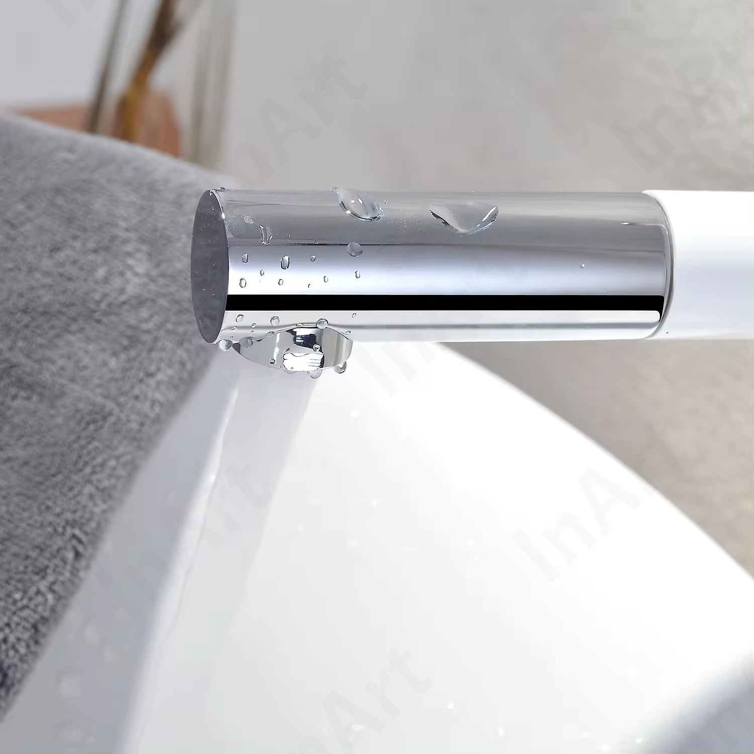 InArt Modern White Bathroom Faucet, 12-Inch Waterfall, Single Lever, Hot and Cold Mixer HNBF053