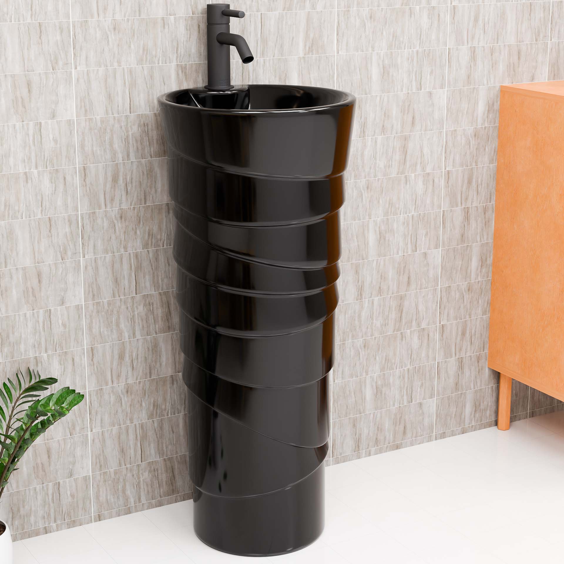 - 1 x Black Ceramic Freestanding Pedestal Wash Basin