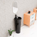 InArt One Piece Ceramic Pedestal Wash Basin – Round Freestanding Design | 15x15x34 Inches | Black PW044