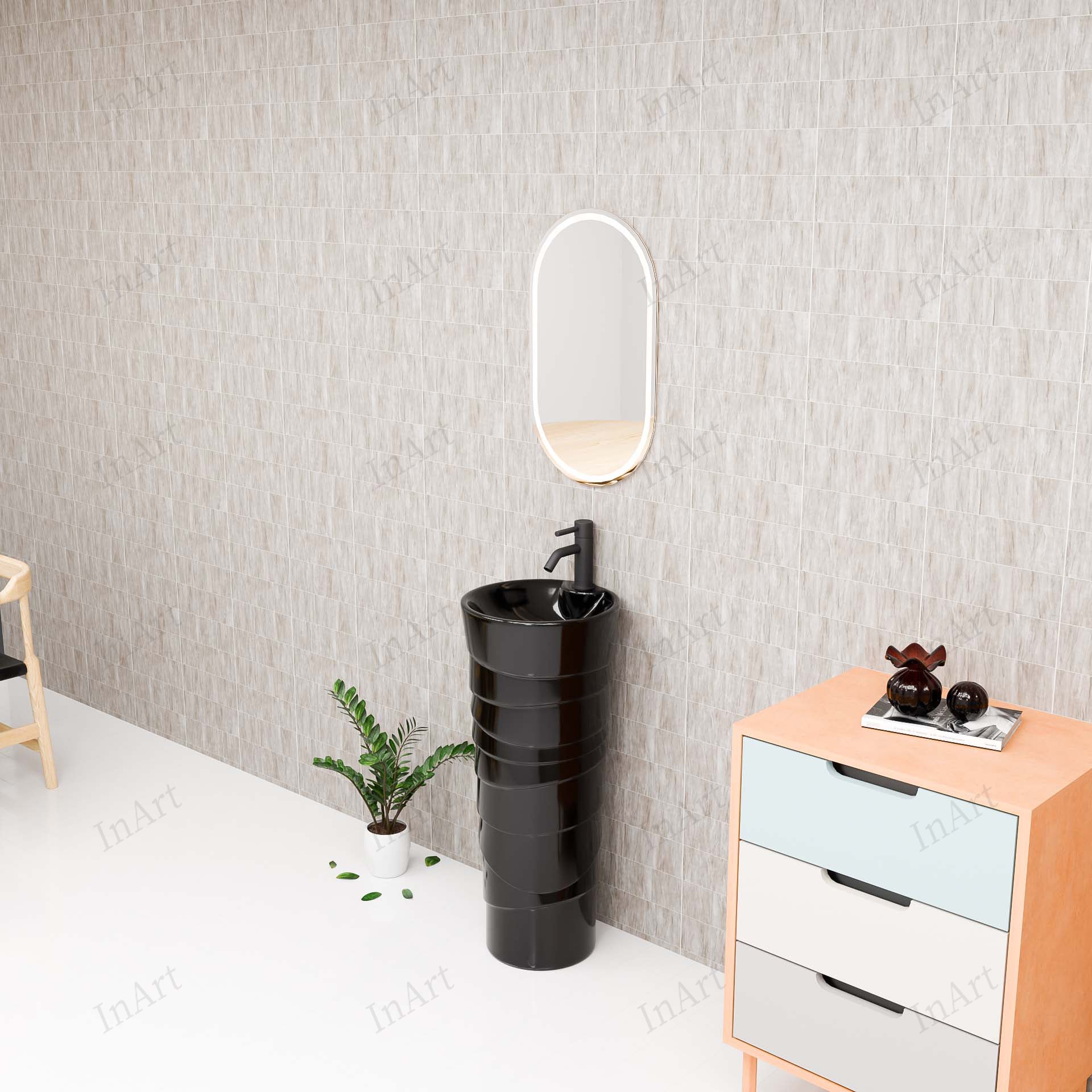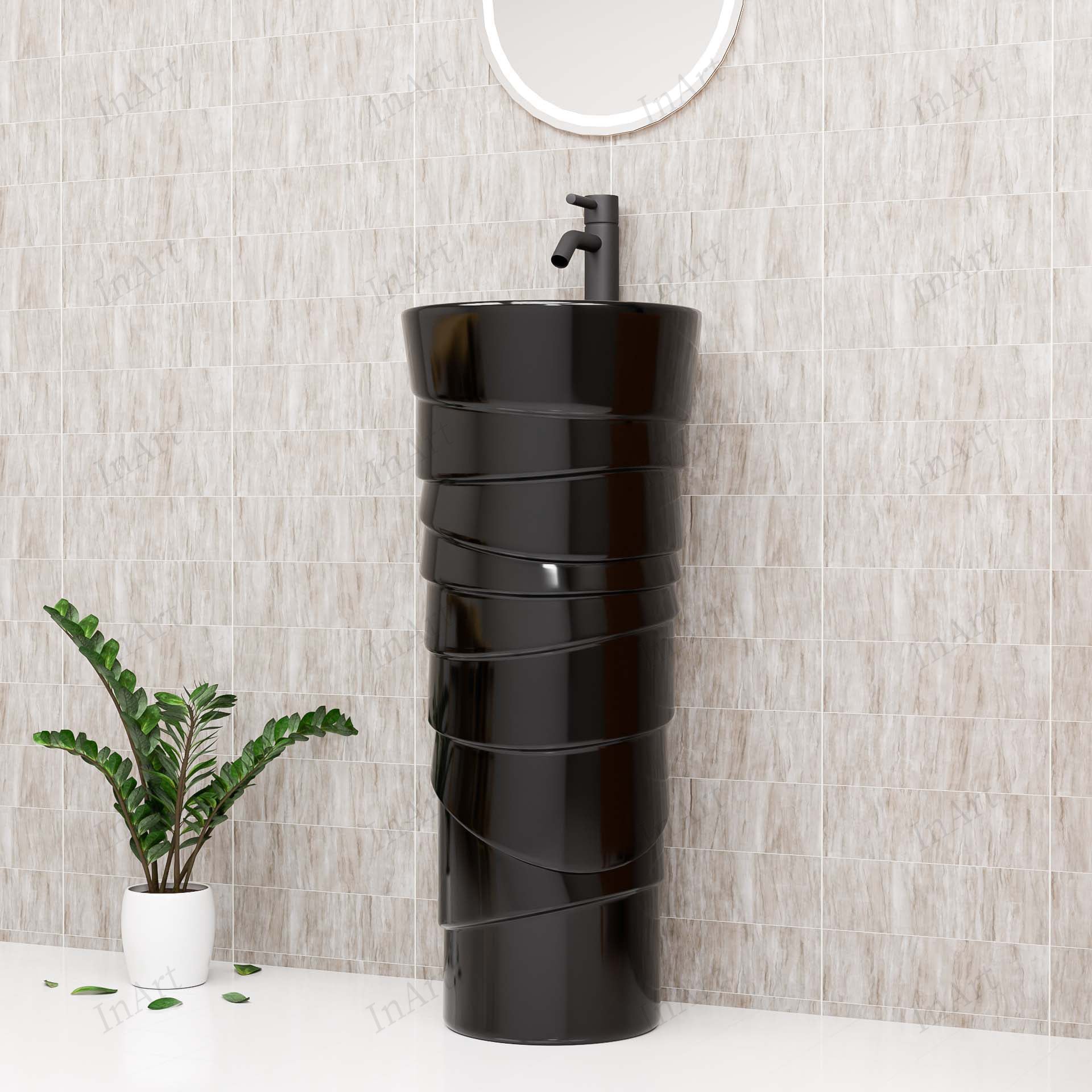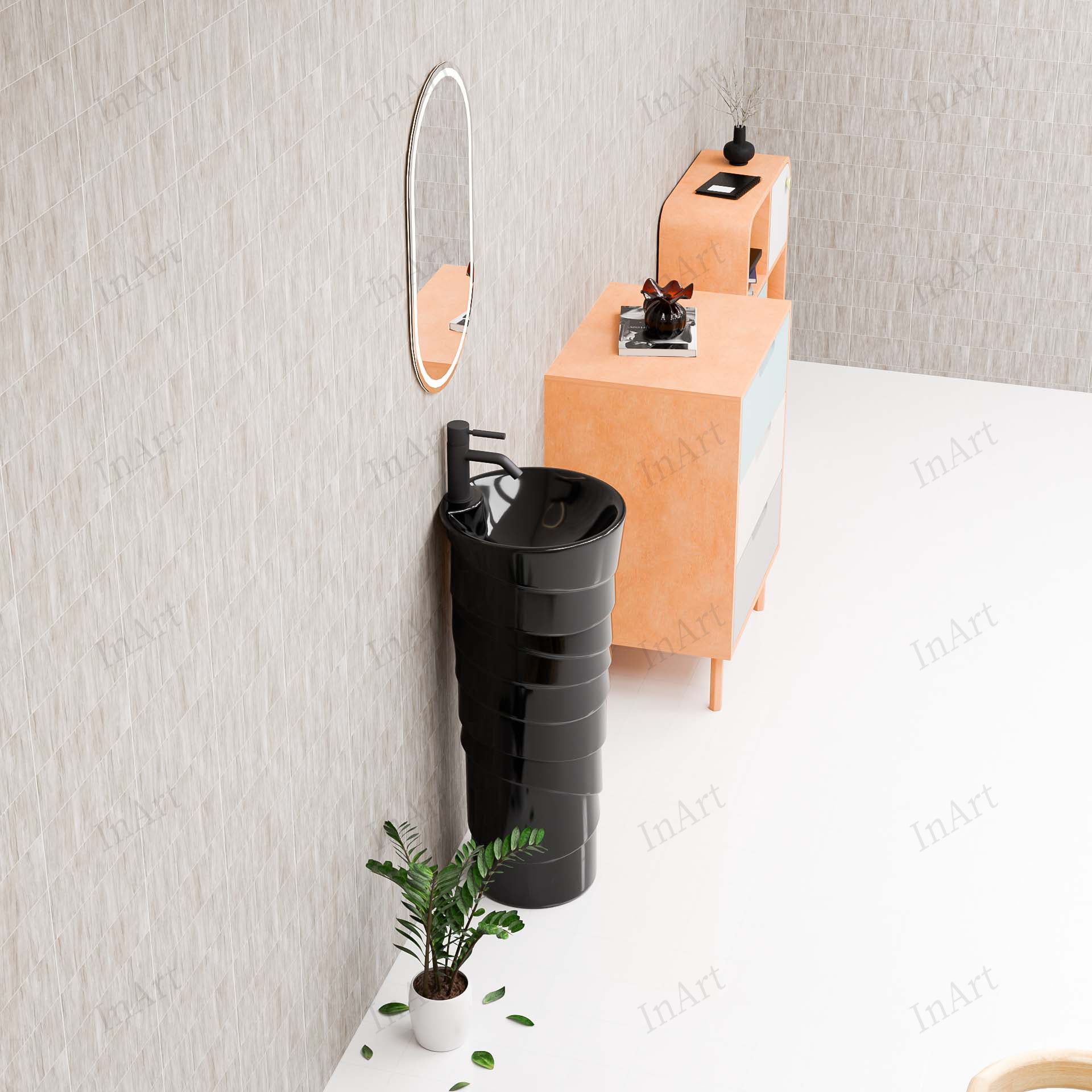 Introduce elegance and practicality into your bathroom or living room with the InArt One Piece Ceramic Pedestal Wash Basin in stunning black. This freestanding basin features a seamless design that combines durability with contemporary style — perfect for luxury bathrooms or designer interiors.