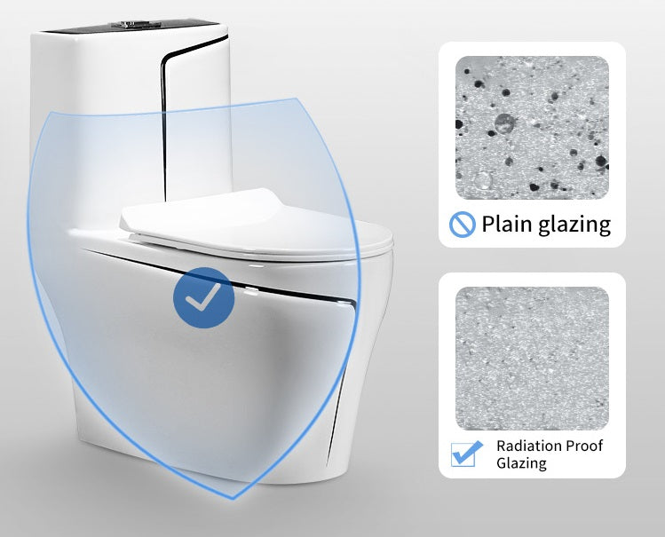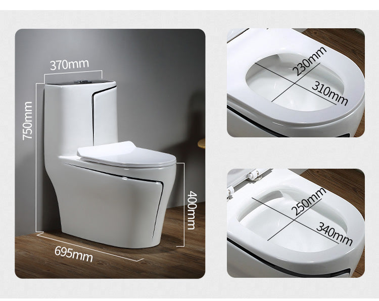 Crafted from high-quality ceramic, the toilet is durable and resistant to wear and tear. The Glossy Black white finish is not only eye-catching but also easy to clean, providing a hygienic solution for your bathroom.