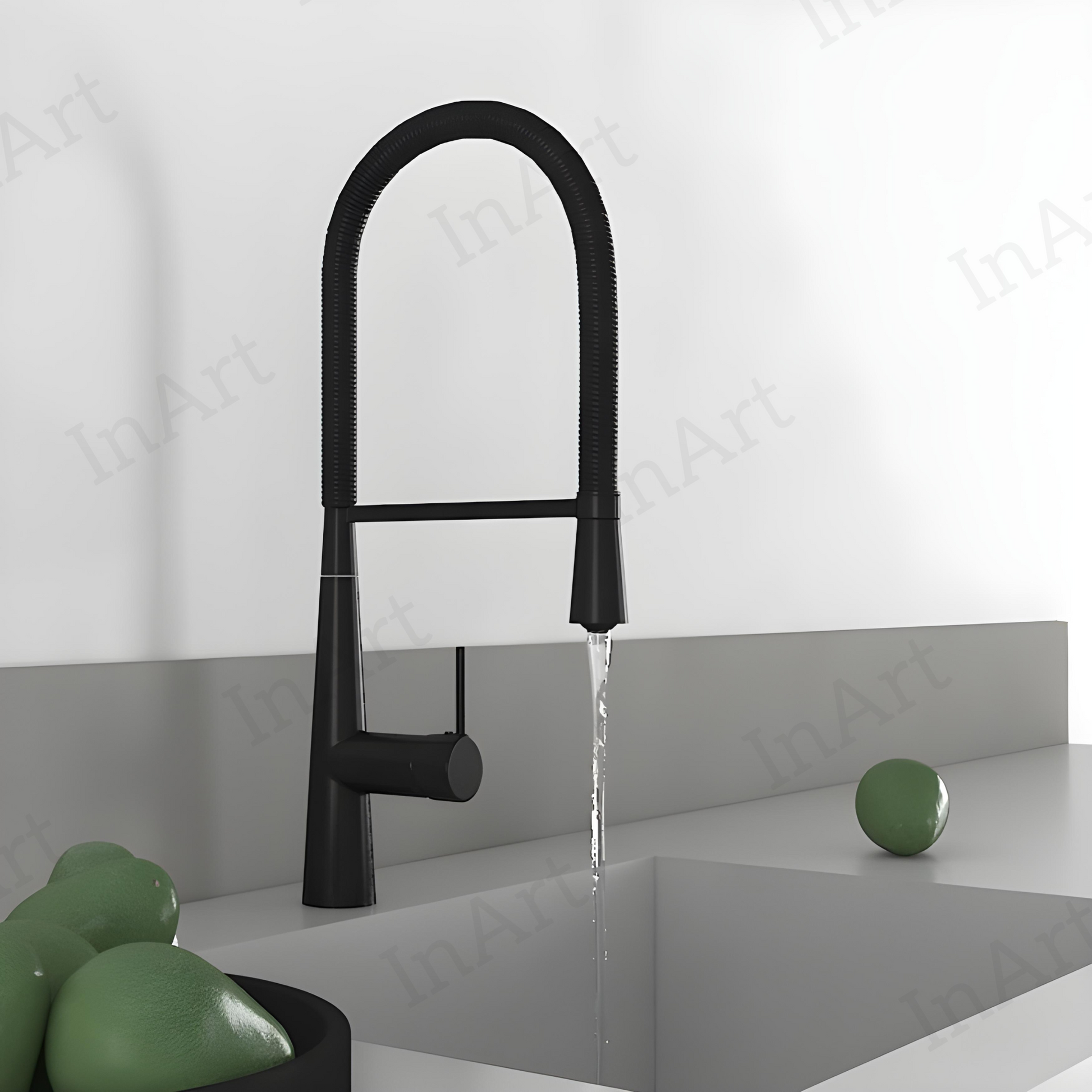 The InArt Single Lever Kitchen Sink Mixer offers a perfect blend of style and functionality. Its 360Β° swivel design and pull-down sprayer make it an essential addition to any modern kitchen. Whether you're washing dishes, rinsing produce, or cleaning the sink, this faucet adapts to your needs with ease. Made from durable stainless steel with a polished black finish, it adds a touch of elegance to your kitchen decor.