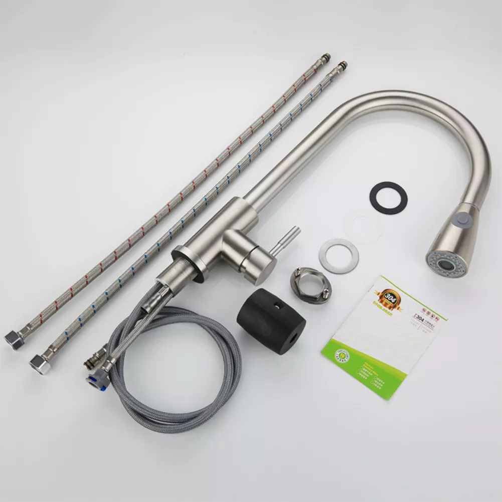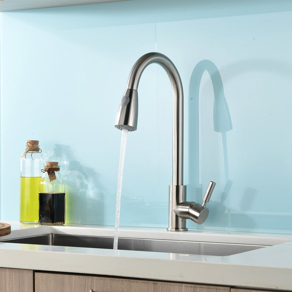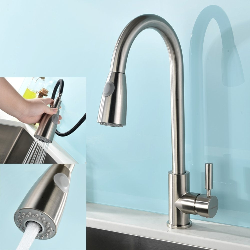 Two spray modes allow you to easily toggle from splash-free aerated stream to powerful pre-rinse spray at the flip of a switch. High arch 360 degree swivel nozzle with 20in pull out hose supply full range of washing for your kitchen sink.