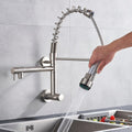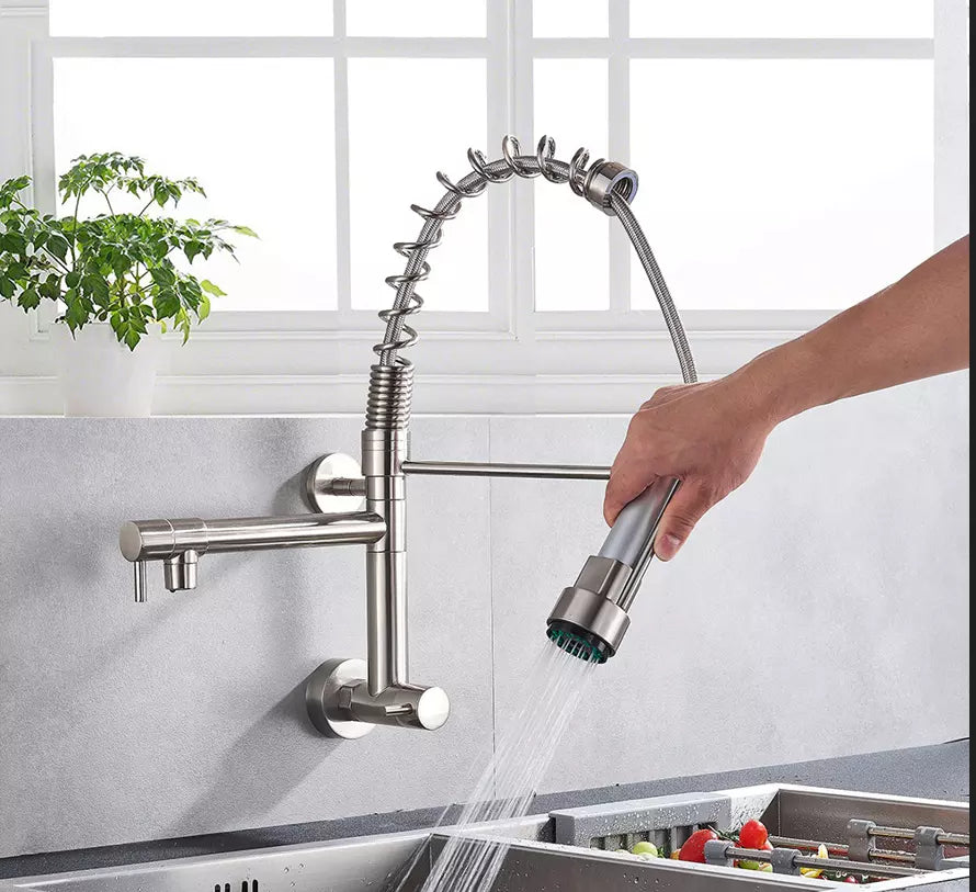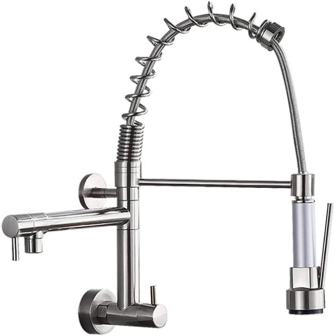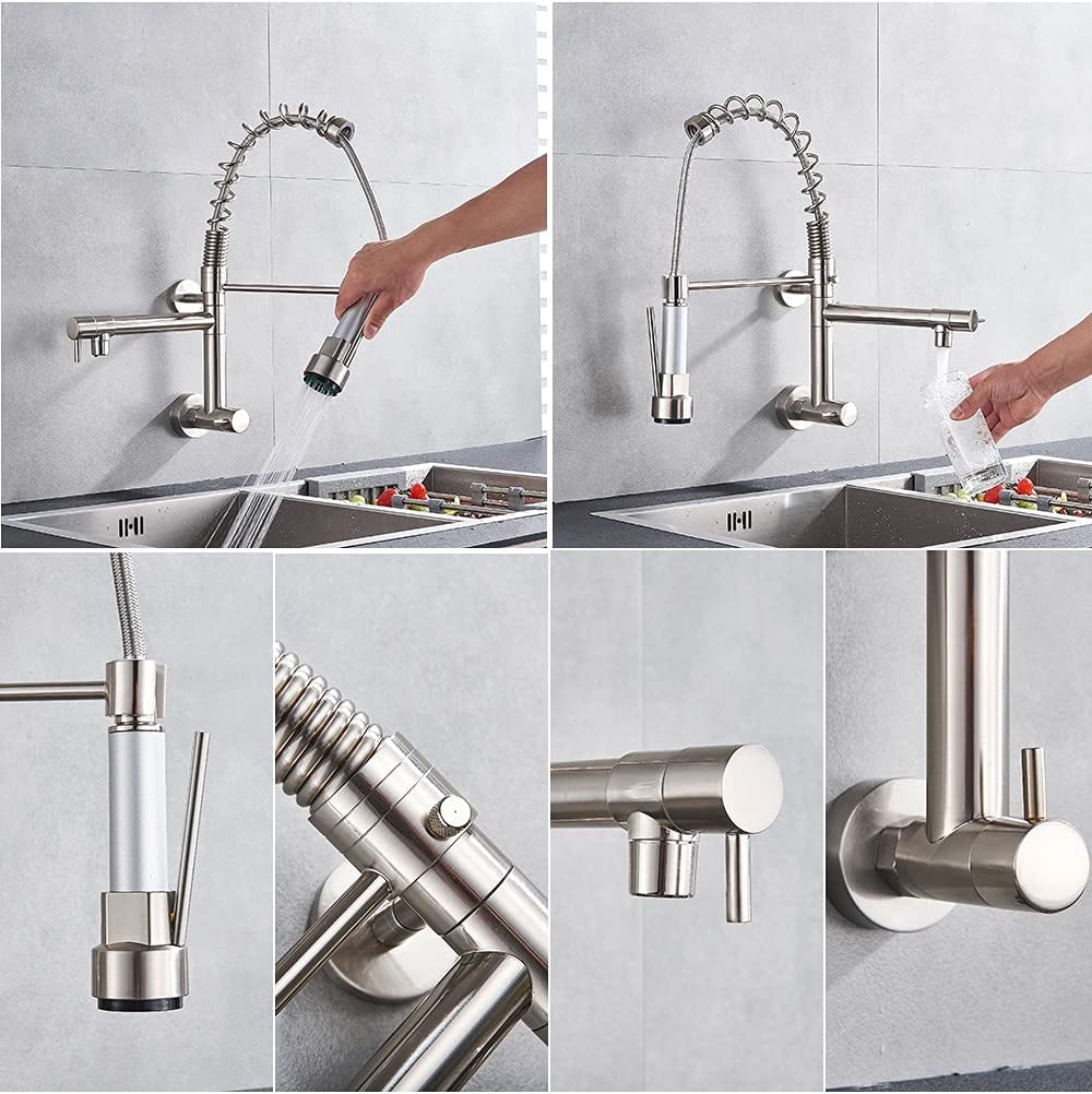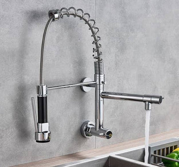 InArt Single Lever Wall Mounted Kitchen Sink Tap 360° Pull-Down Sprayer Kitchen Sink Cock Tap Faucet with Multi-Function Spray Head, Chrome Finish KSF020