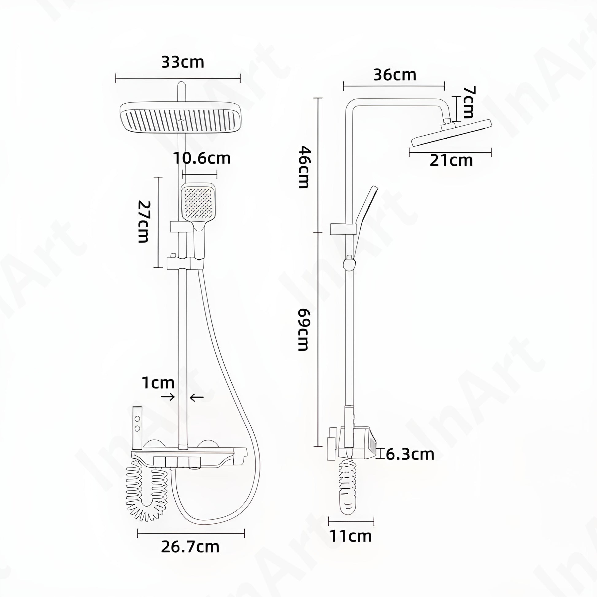 Elevate your bathroom with this luxurious addition and transform your daily routine into a spa-like retreat. The InArt Solid Brass Circular Shower Panel Set combines style, functionality, and advanced technology to offer the ultimate showering experience.