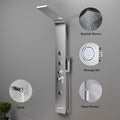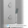 Transform your bathroom into a spa-like retreat with the InArt Stainless Steel Shower Panel. This all-in-one shower system features a sleek, modern design and is crafted from durable stainless steel with a chrome finish. Enjoy the luxurious rainfall shower head, invigorating body nozzles, and the convenience of a handheld shower. The panel includes three body jets, a tub spout, and adjustable hot and cold water controls to customize your shower experience.