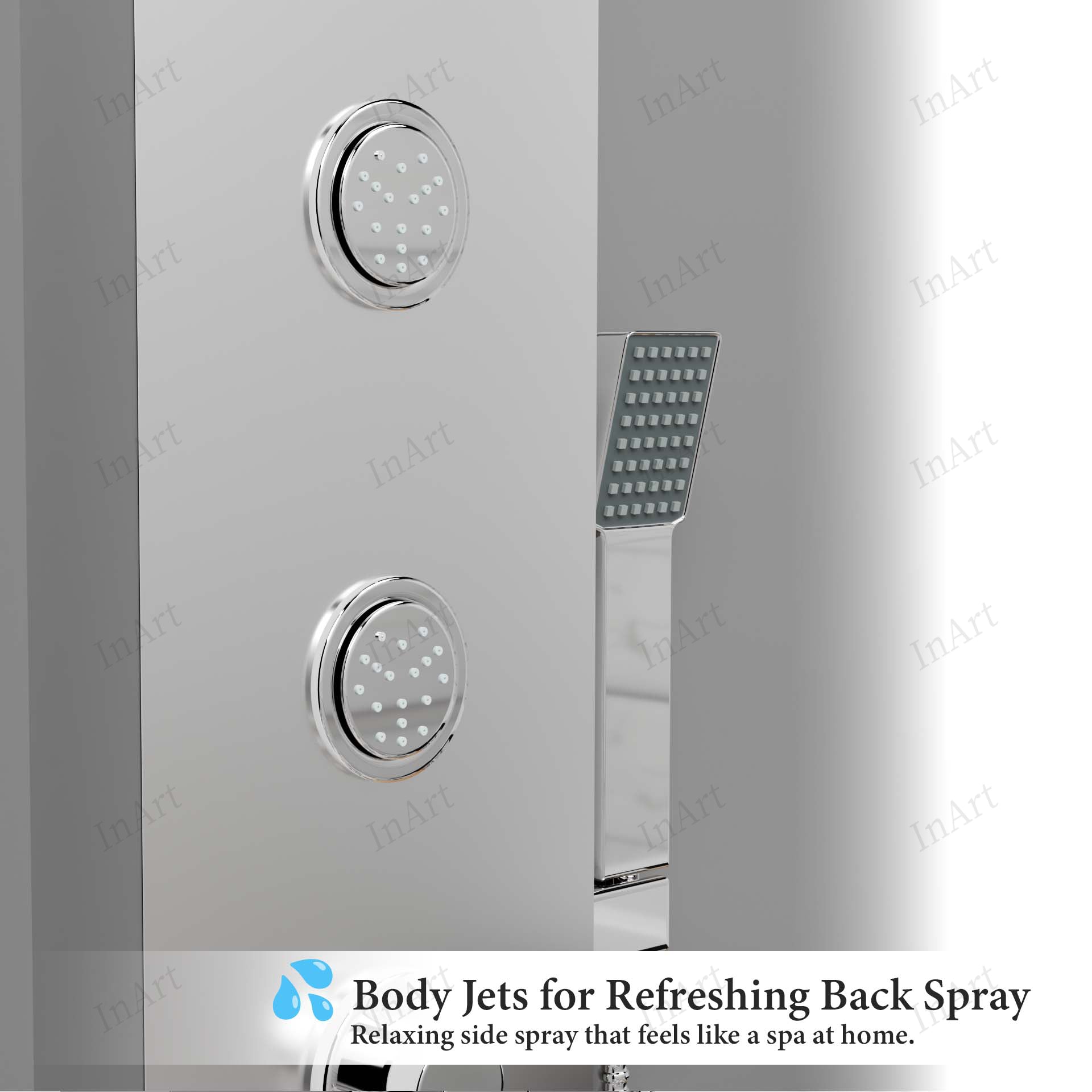 - Shower Bliss Variety: Experience a range of shower options with the InArt Shower Panel, offering 4 functions: Rainfall Shower, Massage Jets Shower, Hand Shower, and Tub Spout