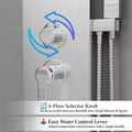 - Easy Control Valve System: Navigate effortlessly through different modes using the user-friendly brass mixing valve, allowing seamless adjustments for the Head Shower, Massage Jets, Tub Spout, and Hand Shower