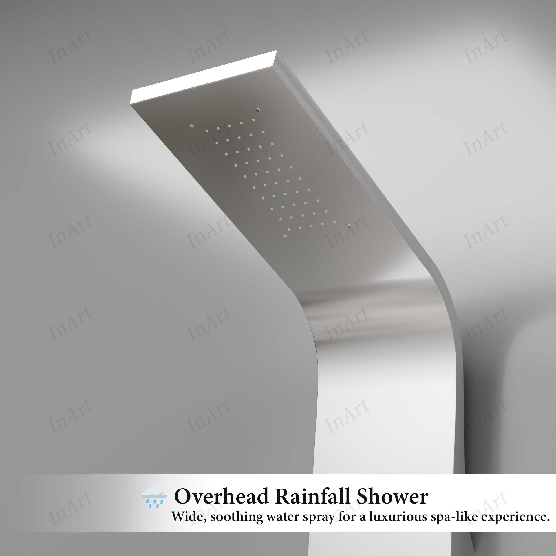 InArt Stainless Steel Shower Panel with Rainfall Shower Head, Body Nozzles, Handheld Shower - Chrome