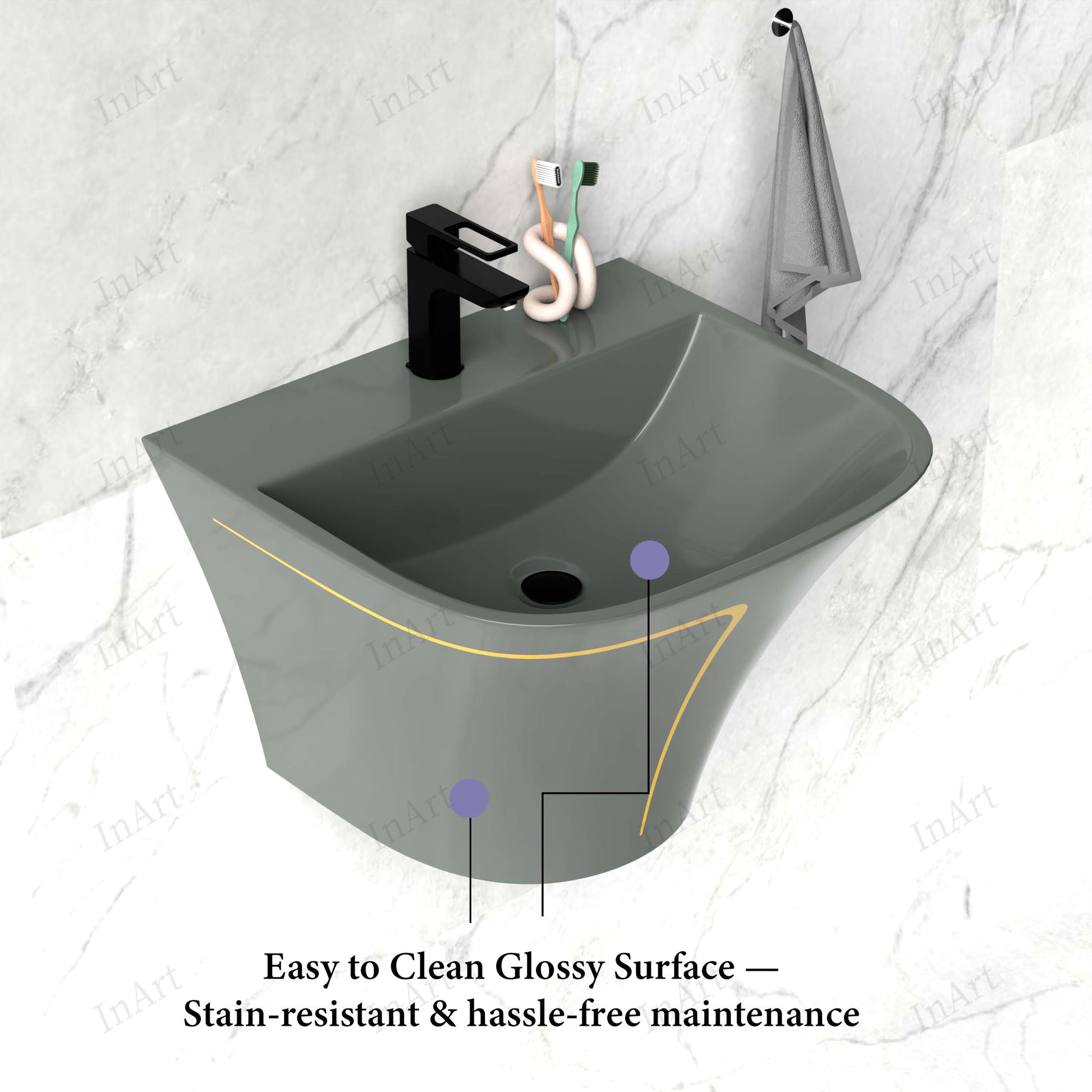 InArt Wall Hung Half Pedestal Ceramic Wash Basin/Vessel Sink 49x44 CM Grey Glossy HPD005