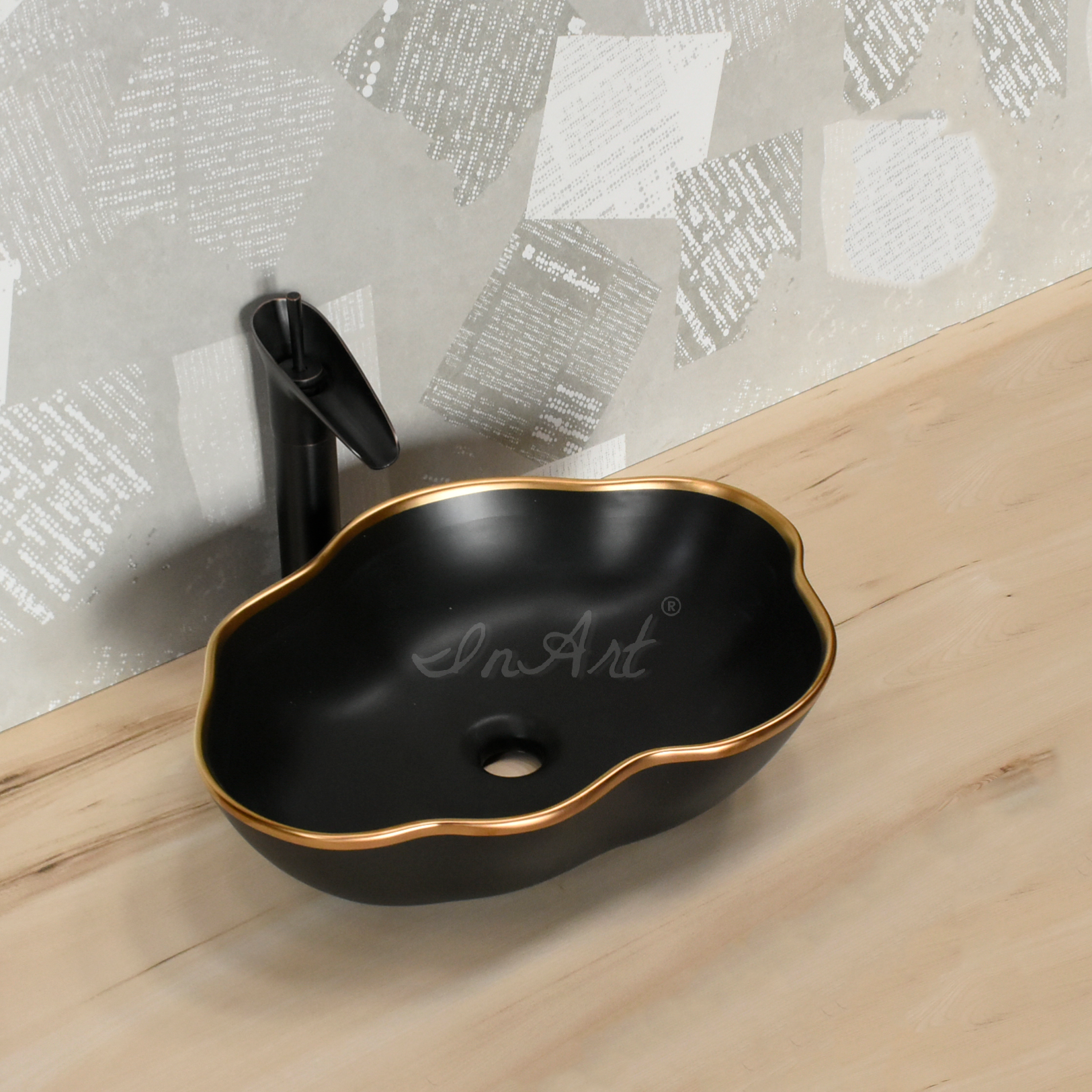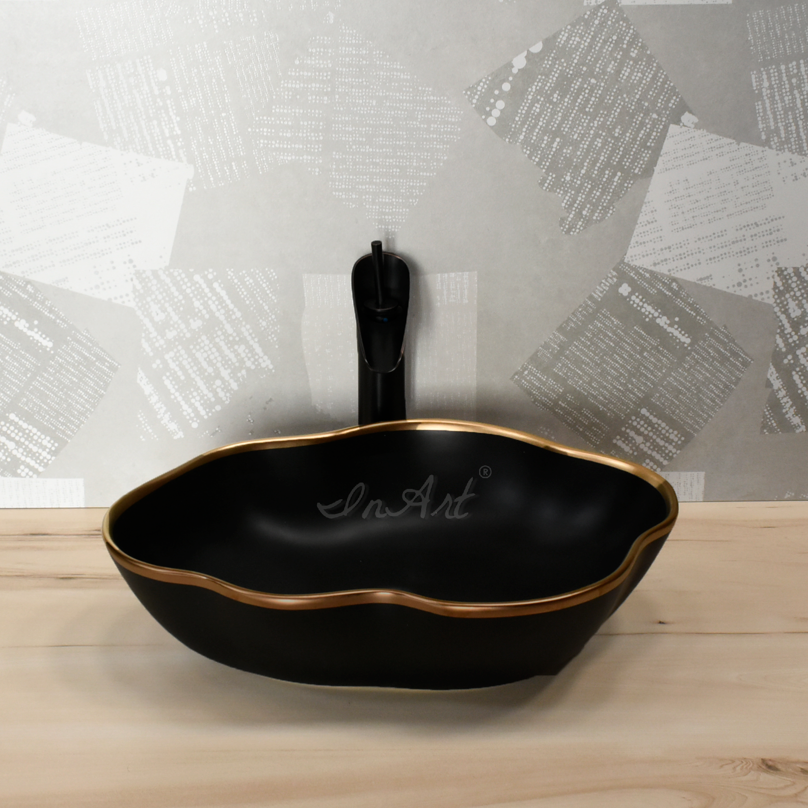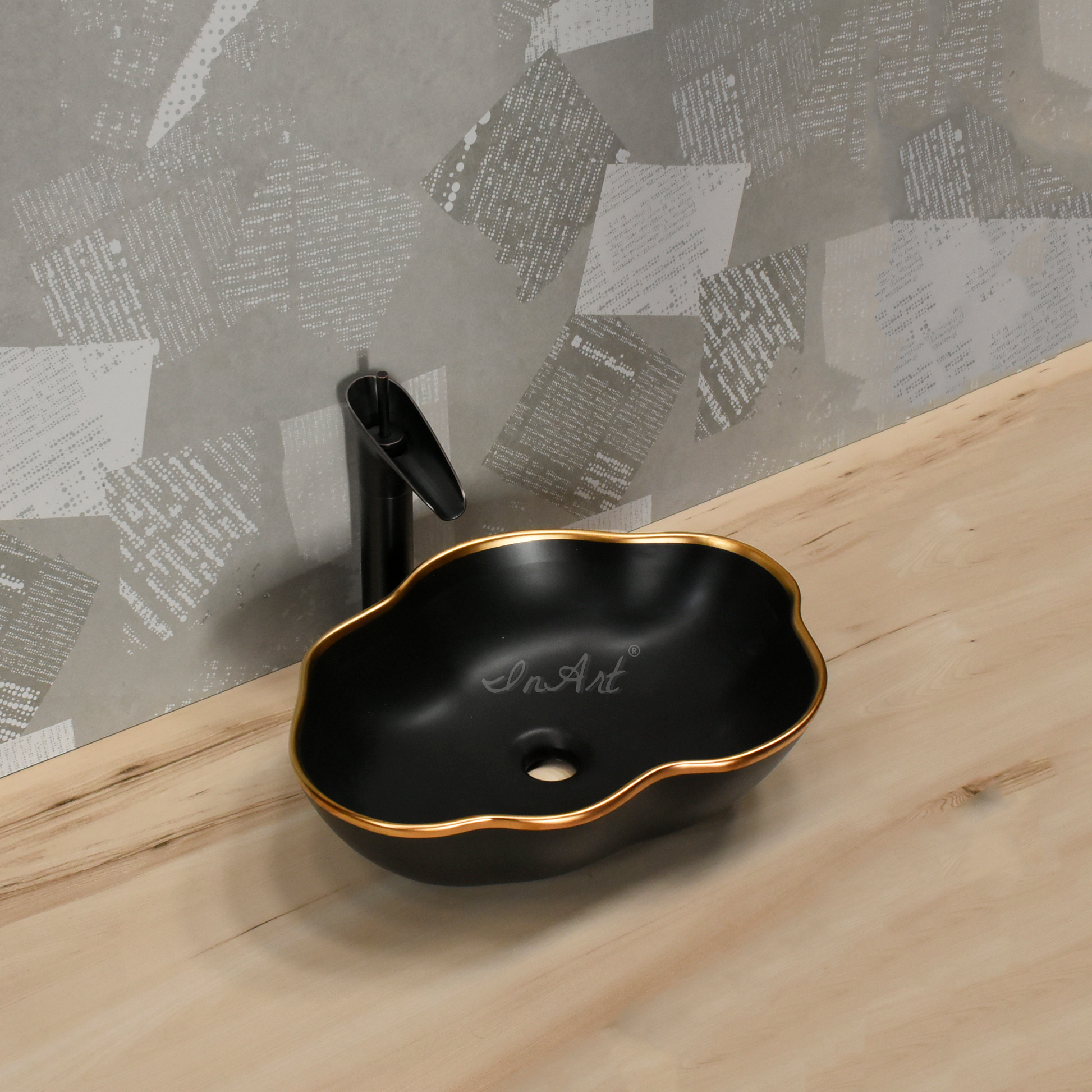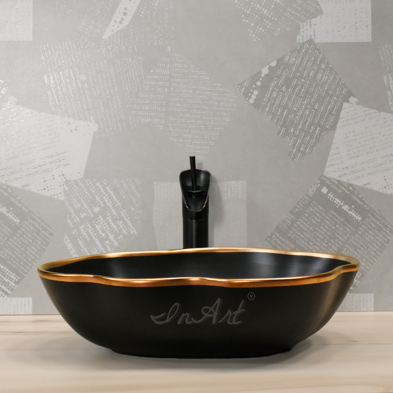 InArt Wash Basin Table Top Design Matt Black Gold Color 50 x 38 CM Counter Basin DW060