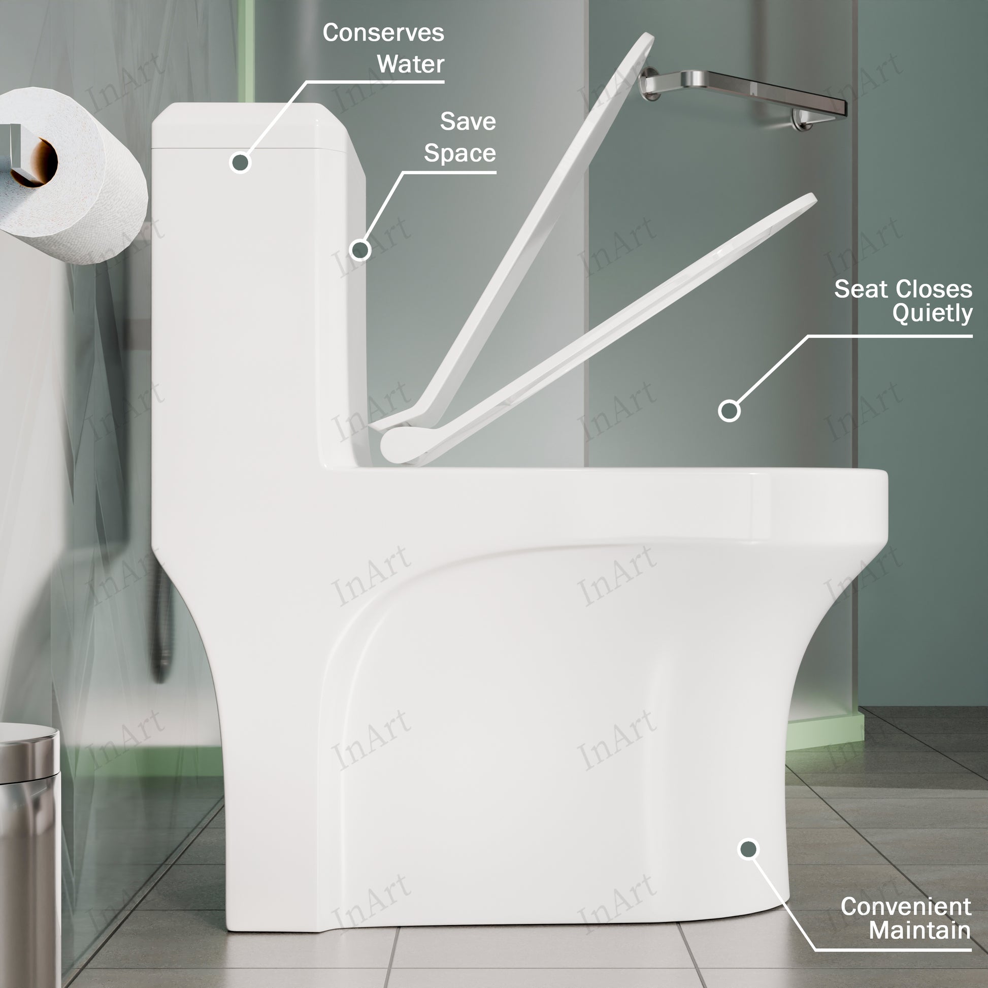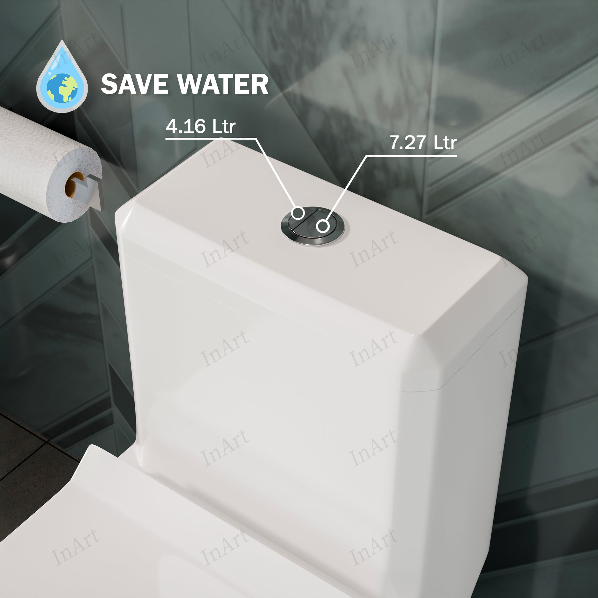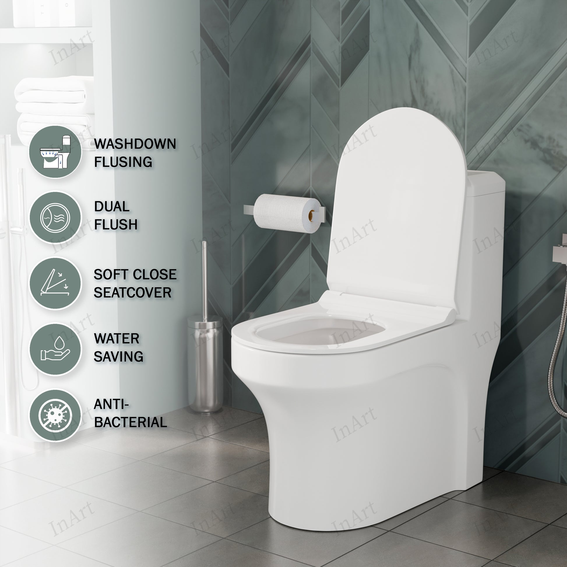 - InArt Western Floor Mounted One Piece Water Closet Ceramic Western Toilet/Commode/European Commode Square With Soft Close Seat Cover For Lavatory, Toilets (S-Trap Outlet Is From Floor)